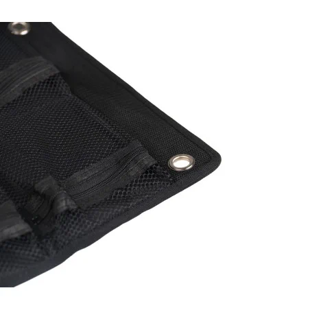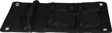 È stato progettato con cinque tasche a rete, per riporre vari strumenti e oggetti di piccole dimensioni.