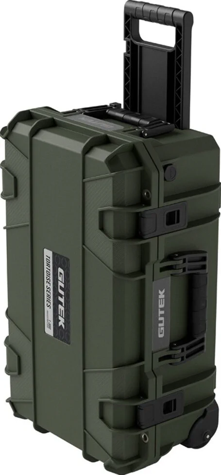 La Tortoise T-300 è una valigia protettiva per il trasporto a mano da 50cm adatta alla maggior parte delle compagnie aeree. Pesa 5,16kg quando è vuota e ha un volume di 30 litri, con dimensioni esterne di 56×35,5×23 cm e dimensioni interne di 51,5×30×18 cm. È inoltre dotato di una maniglia retrattile e di ruote, che lo rendono adatto a una varietà di usi. Premendo il pulsante accanto alla maniglia, gli utenti possono facilmente estrarla e ritrarla.