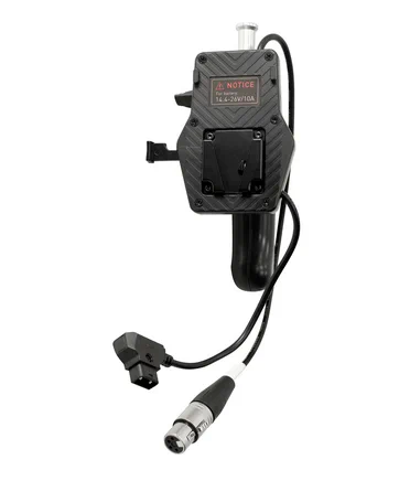 Esclusivo battery grip con montaggio a V per Forza 150, il design ergonomico offre una presa comoda, il connettore XLR standard a 4 pin integrato facilita il collegamento all’apparecchio. Non solo una soluzione di illuminazione mobile può essere realizzata senza sforzo, ma anche una soluzione di supporto leggero con il suo pin da 5/8″. L’impugnatura è compatibile con batterie V-mount 14,8V/26V con connettore D-Tap.