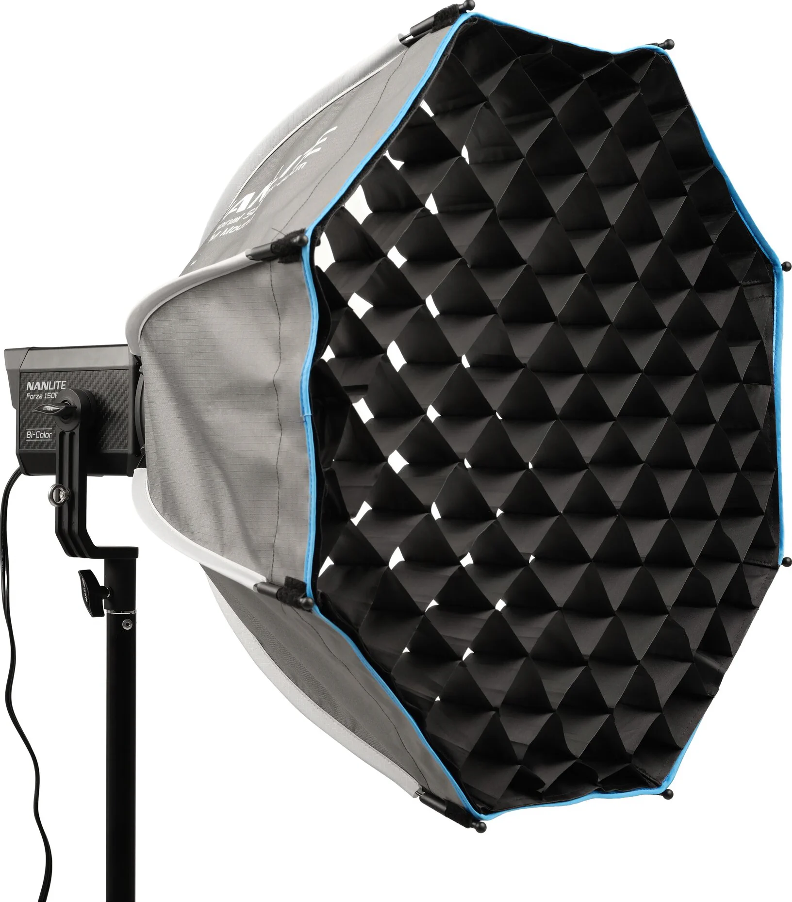 Facile da installare e da riporre: Il softbox, le centine e l’anello di velocità sono integrati in un’unica unità che ne garantisce la durata. Per completare l’installazione, l’utente deve solo tirare su e fissare le otto centine nell’anello di velocità. Quando si ripone il softbox, non è necessario rimuovere il diffusore o la griglia, in modo da renderlo comodo per l’uso successivo.