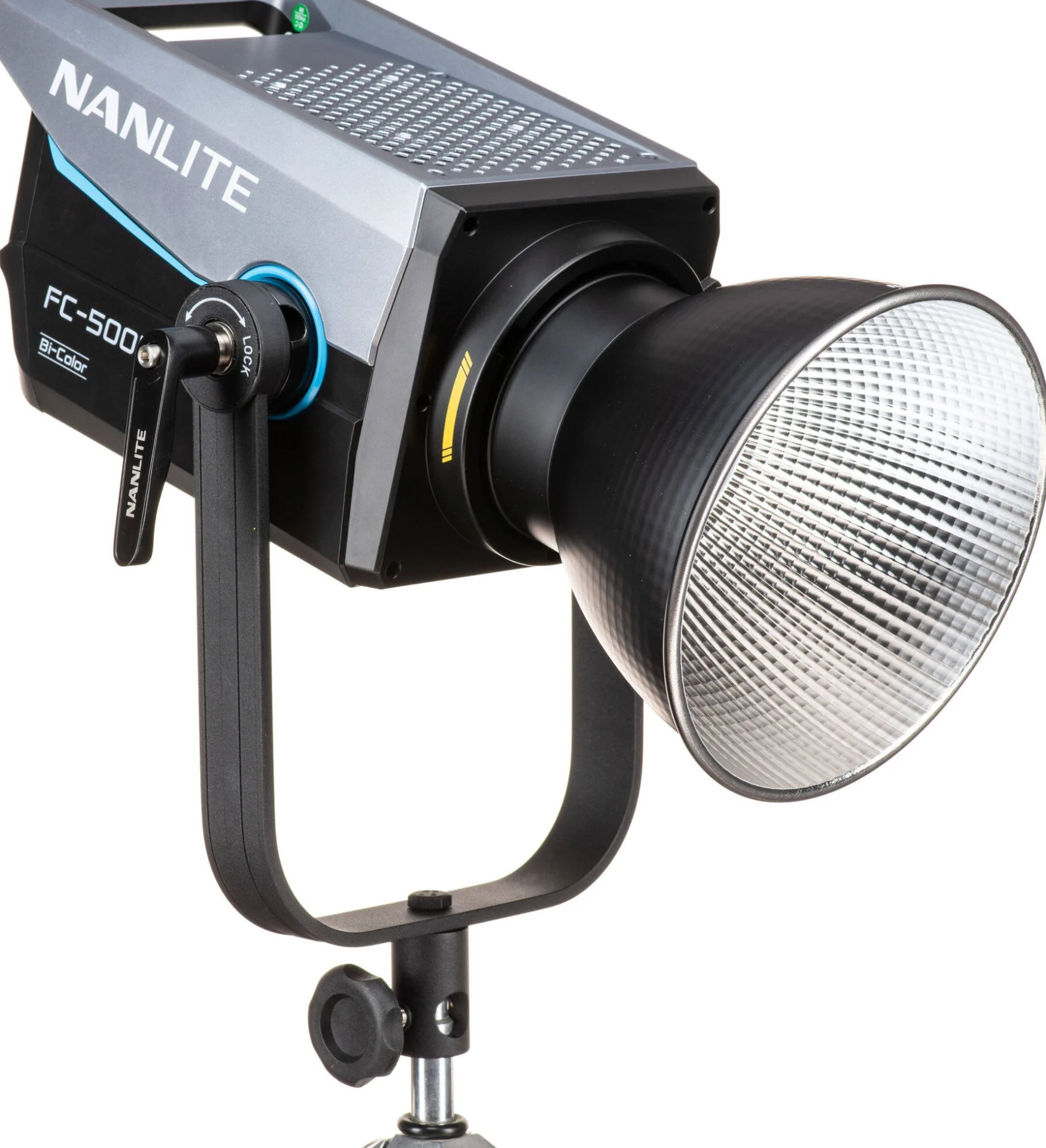 L’FC500B viene fornito con un giogo con bloccaggio su un lato che consente una rotazione di 360° per una maggiore gamma di inclinazione. Un ricevitore da 5/8″ accetta supporti per luci standard del settore e il supporto Bowens della luce è ampiamente compatibile con più modificatori di luce.