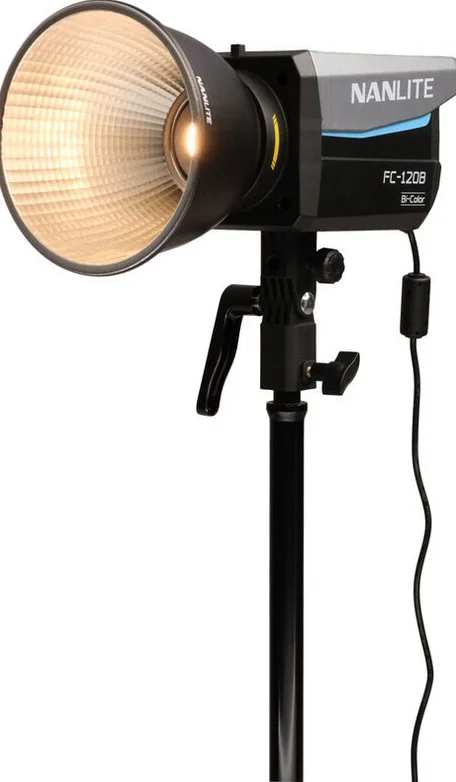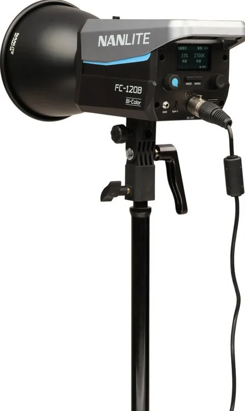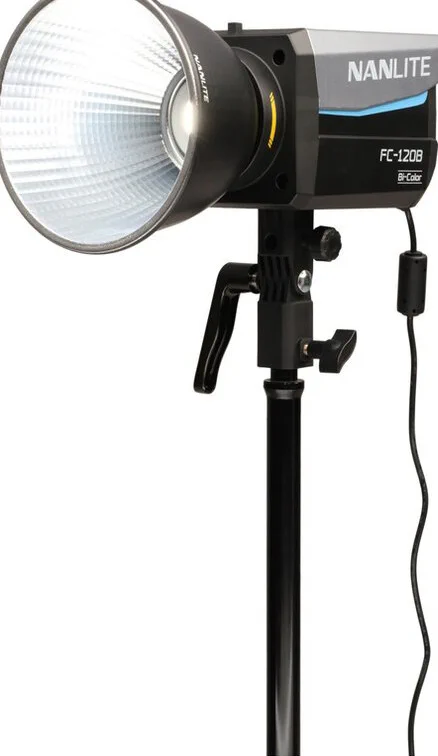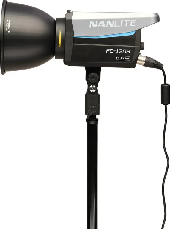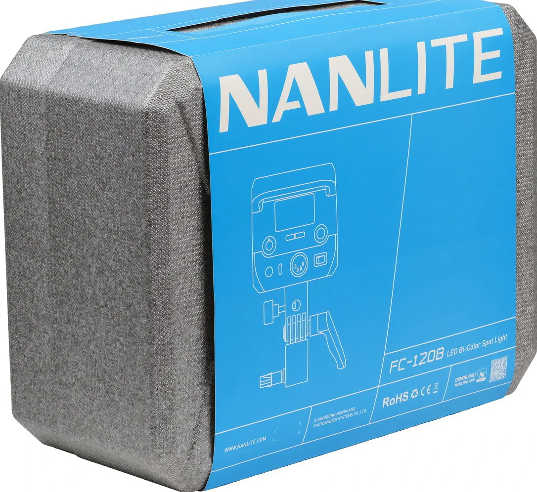 Nanlite FC-120B è un proiettore LED bicolore notevolmente compatto e leggero, soprattutto se si considera l’impressionante quantità di luce che emette (5333 lux, 495 fc @1M a bulbo nudo 5600K). Funziona a batterie, powerbank o a corrente alternata e offre una luce estremamente precisa e una gamma versatile di metodi di controllo: onboard, Bluetooth, 2.4G e DMX/RDM. I creatori vogliono sempre che le loro luci siano il più luminose possibile, pur essendo piccole e facili da nascondere dietro gli oggetti inquadrati, e che siano anche accessibili. L’FC-120B soddisfa perfettamente questo ruolo. È facile da usare per i principianti e offre anche funzioni avanzate. È inclusa una custodia in schiuma rigida con chiusura a scatto che contiene l’FC-120B, l’alimentatore CA, il riflettore a 45° e l’adattatore Bowens-Mount.