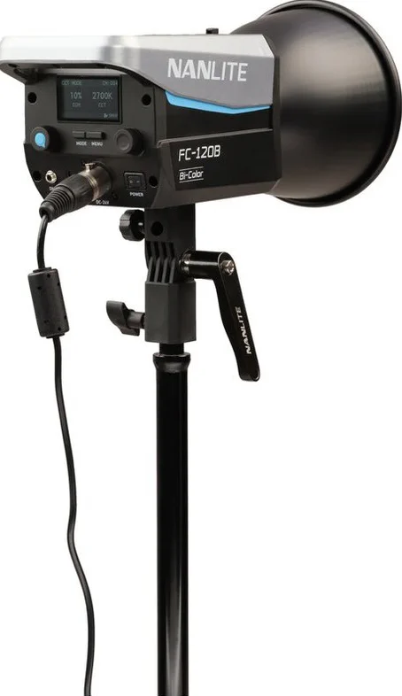 La temperatura del colore può essere regolata rapidamente da 2700K a 6500K con una manopola dedicata, in modo da fondersi con altre luci e ottenere diversi look, dai toni caldi degli interni alla luce del giorno. Come tutti gli apparecchi Nanlite, FC-120B offre prestazioni prive di sfarfallio e un’elevata precisione cromatica, con un SSI di 82 (3200K) e 74 (5600K), un TCI medio di 96 e un TLCI medio di 98. L’FC-120B è dotato di una sorgente luminosa COB protetta da vetro per garantire un ciclo di vita più lungo del prodotto.