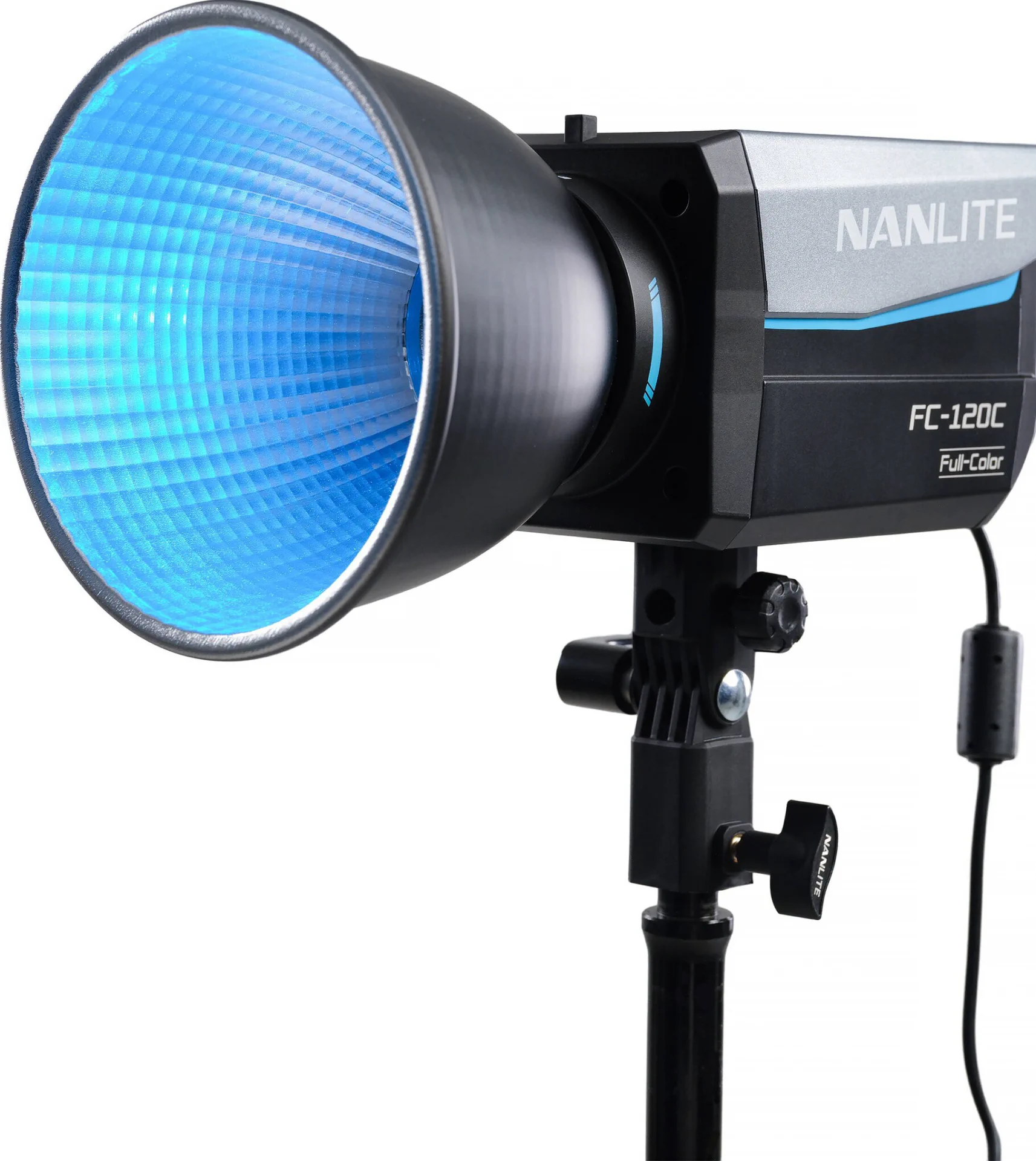 Utilizzando un attacco FM proprietario per modificatori di luce, l’FC120C è compatibile con una selezione di modificatori di luce Nanlite, come diversi tipi di softbox, una lente Fresnel FL-11 opzionale o un attacco per proiezione. L’apparecchio comprende anche un adattatore Bowens con portaombrelli integrato per una maggiore compatibilità con un vasto numero di modificatori di luce opzionali.