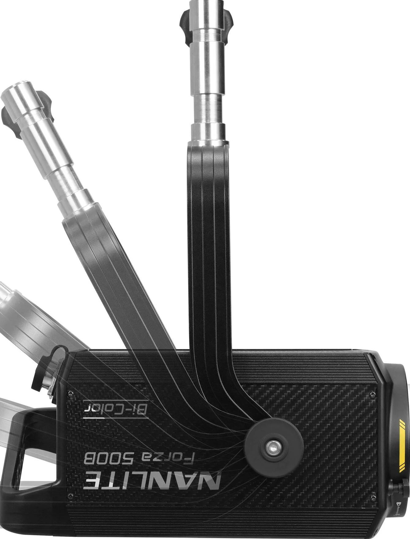 La forcella consente una rotazione di 360°, è curva per fornire un maggiore raggio di inclinazione con i modificatori di grandi dimensioni, è dotata di un blocco unilaterale e continuo per un facile posizionamento, di un attacco a ombrello per maggiori opzioni di modellazione della luce e la base è compatibile sia con i perni baby da 5/8” che con i perni junior da 1 1/8”. Il ventilatore ha 4 modalità: Smart, Full Speed, Low Speed e Off per un silenzio assoluto. Una custodia da trasporto imbottita e ridisegnata, con un’imbottitura migliorata, contiene tutto in modo sicuro. La porta USB consente di aggiornare il firmware per aggiungere nuove funzioni in futuro e può alimentare ricevitori DMX wireless (venduti separatamente) o altri dispositivi.