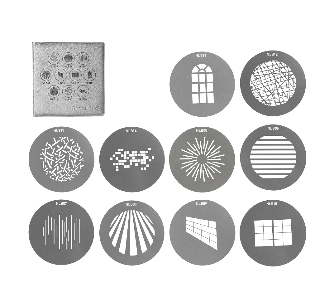 Il Nanlite Gobo Set 1 è una raccolta di 10 dischi gobo completamente compatibili con l’attacco di proiezione PJ-BM. Include 3 tipi di finestre separate: ad arco, doppie e angolate e modelli utili come un array lineare e altre rotture. Usali per creare sfondi avvincenti, ombre e riflessi convincenti e innumerevoli altri effetti.