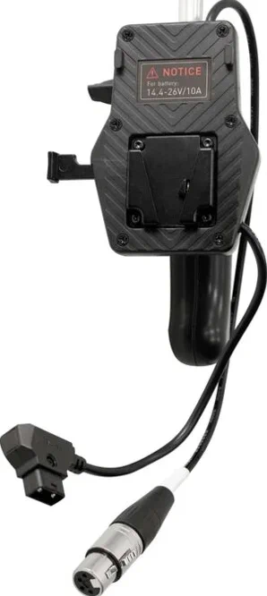 Esclusivo battery grip con montaggio a V per Forza 150, il design ergonomico offre una presa comoda, il connettore XLR standard a 4 pin integrato facilita il collegamento all’apparecchio. Non solo una soluzione di illuminazione mobile può essere realizzata senza sforzo, ma anche una soluzione di supporto leggero con il suo pin da 5/8″. L’impugnatura è compatibile con batterie V-mount 14,8V/26V con connettore D-Tap.