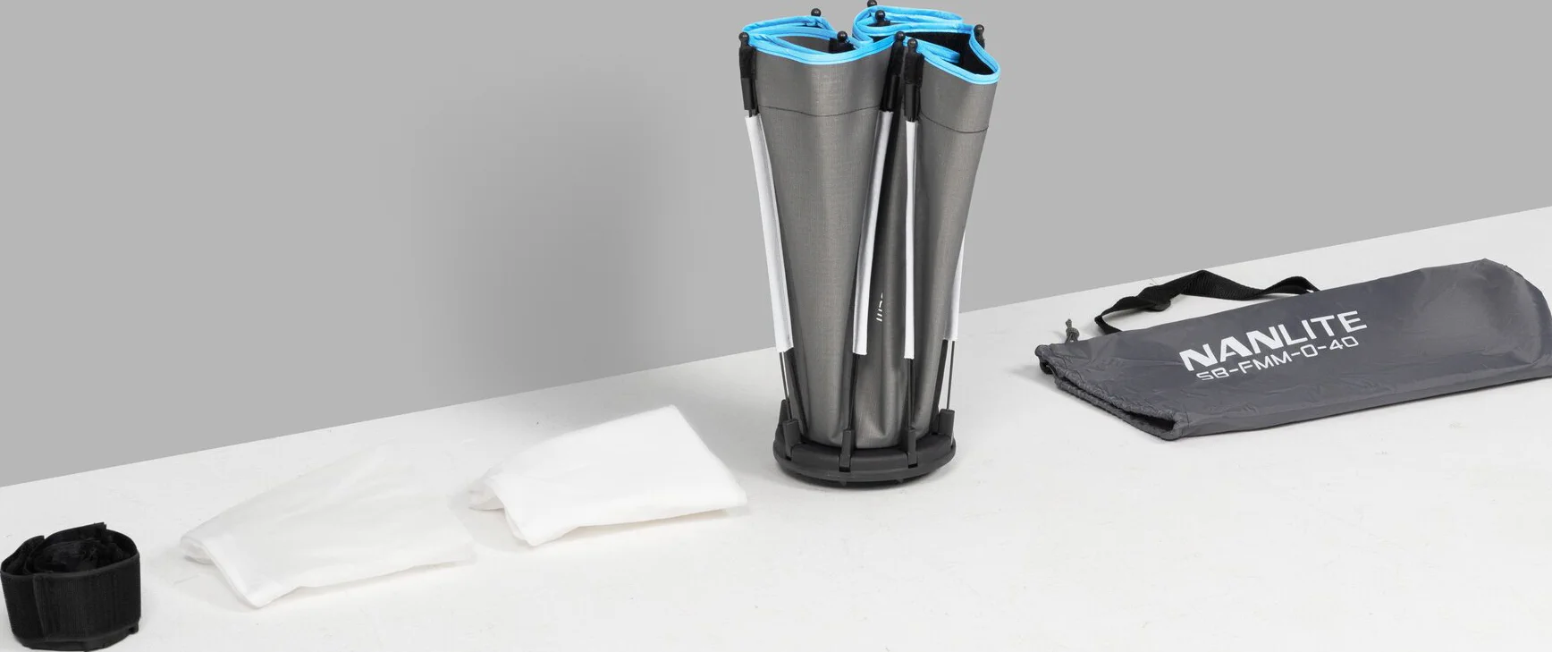 Facile da installare e da riporre: Il softbox, le centine e l’anello di velocità sono integrati in un’unica unità che ne garantisce la durata. Per completare l’installazione, l’utente deve solo tirare su e fissare le otto centine nell’anello di velocità. Quando si ripone il softbox, non è necessario rimuovere il diffusore o la griglia, in modo da renderlo comodo per l’uso successivo.