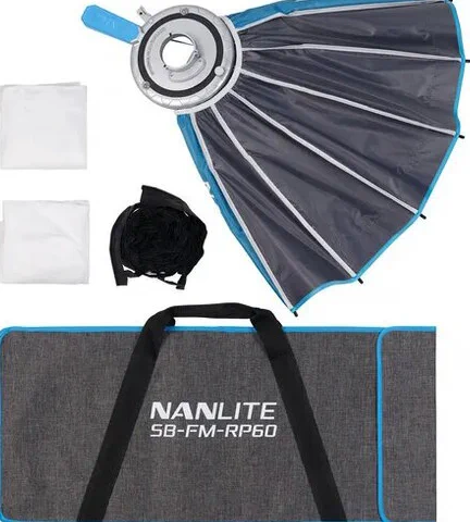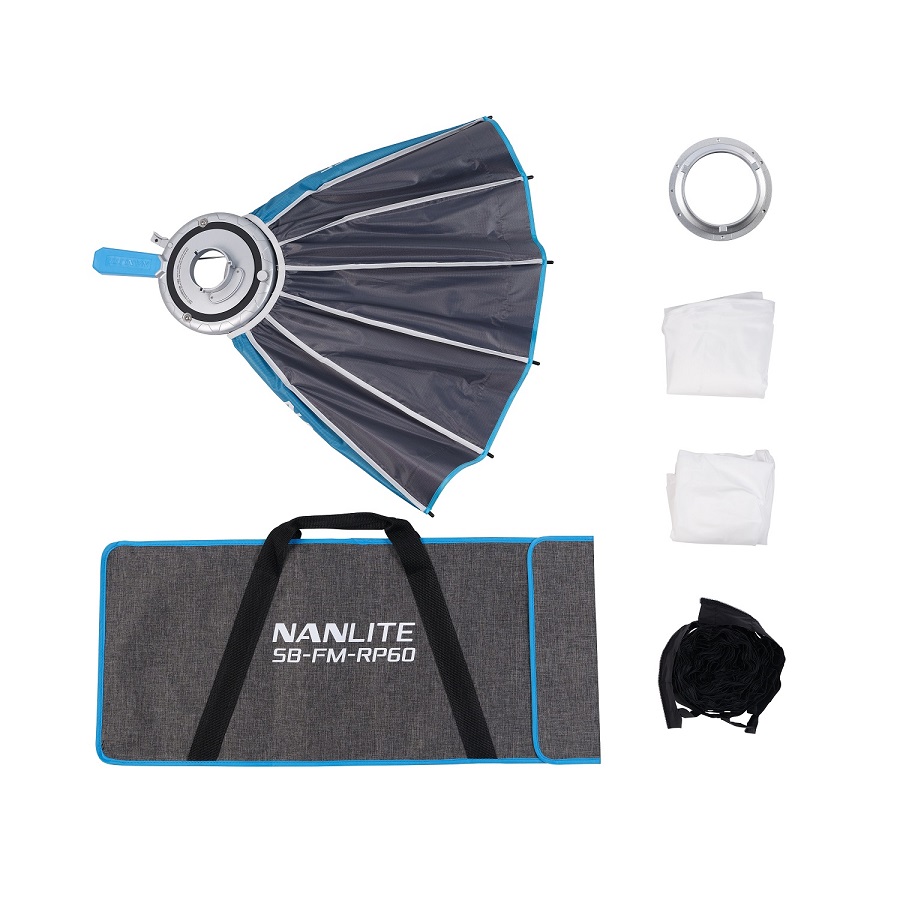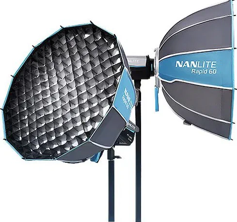 Progettato per semplificare la configurazione dei softbox e integrarsi facilmente nel flusso di lavoro, il softbox Rapid 60 FM Mount di Nanlite è completamente compatibile con i dispositivi con attacco FM del marchio. Il Rapid 60 è un modificatore da 60 cm altamente portatile, caratterizzato da un design circolare che crea una luce morbida per lavori fotografici e video. Aggiungi la griglia inclusa per ottenere un maggiore controllo direzionale o rimuovi i due diffusori inclusi per un’illuminazione diretta. A differenza dei softbox tradizionali, il Rapid 60 è facile da montare e riporre nella borsa per il trasporto in dotazione.