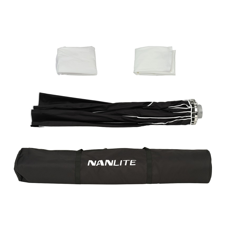 Nanlite offre diffusori frontali a 1 e 2 stop per consentire una maggiore regolazione della qualità della luce. Il Para 150 si trasforma in un grande riflettore che emette una luce ad alto contrasto quando non viene utilizzato nessuno dei due diffusori.