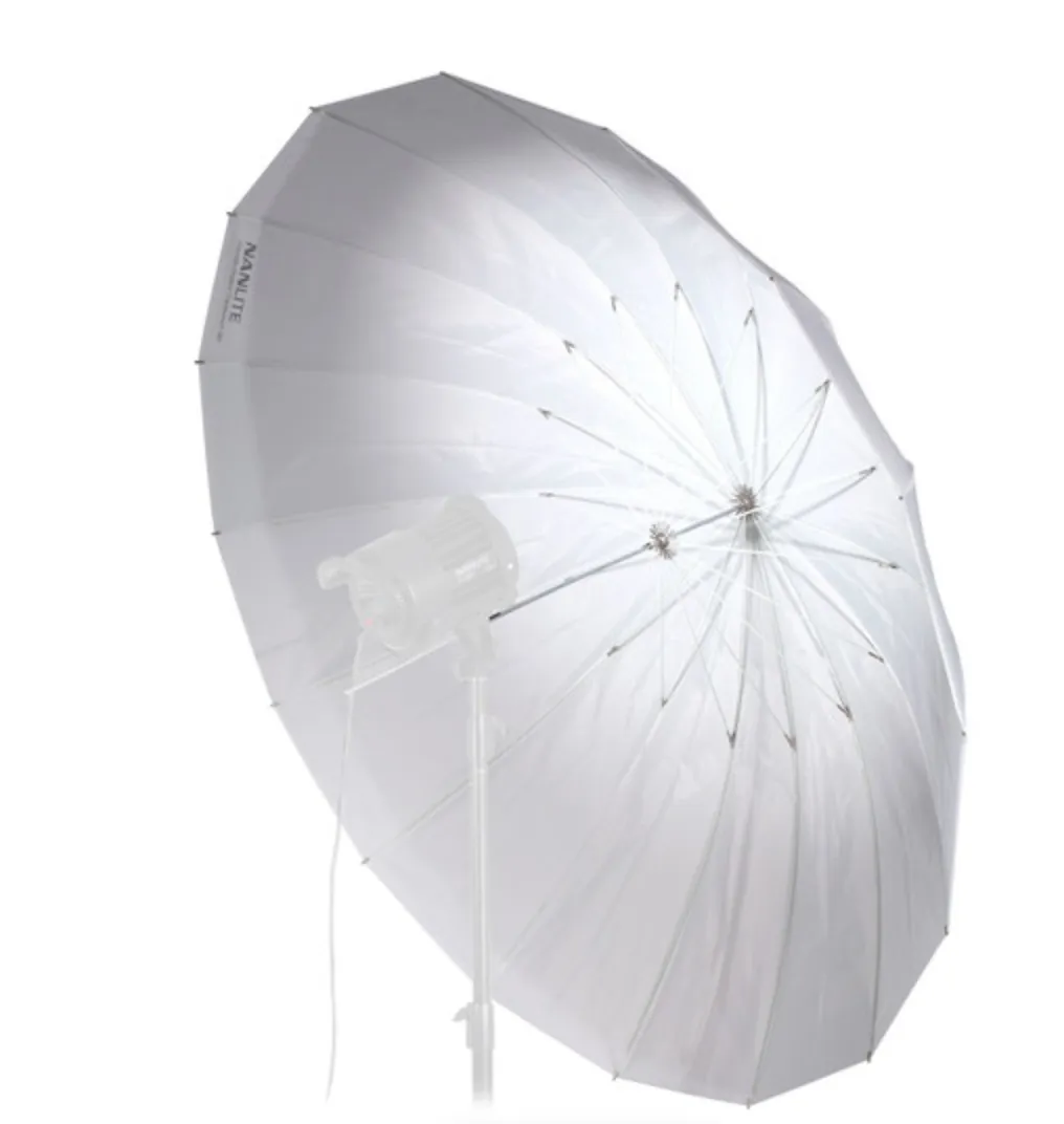 L’interno argentato del NanLite Silver Shallow Umbrella 180 massimizza l’emissione, creando una luce contrastata con dettagli nitidi, mentre il suo design a 16 aste mantiene la forma rigida per una diffusione uniforme della luce.