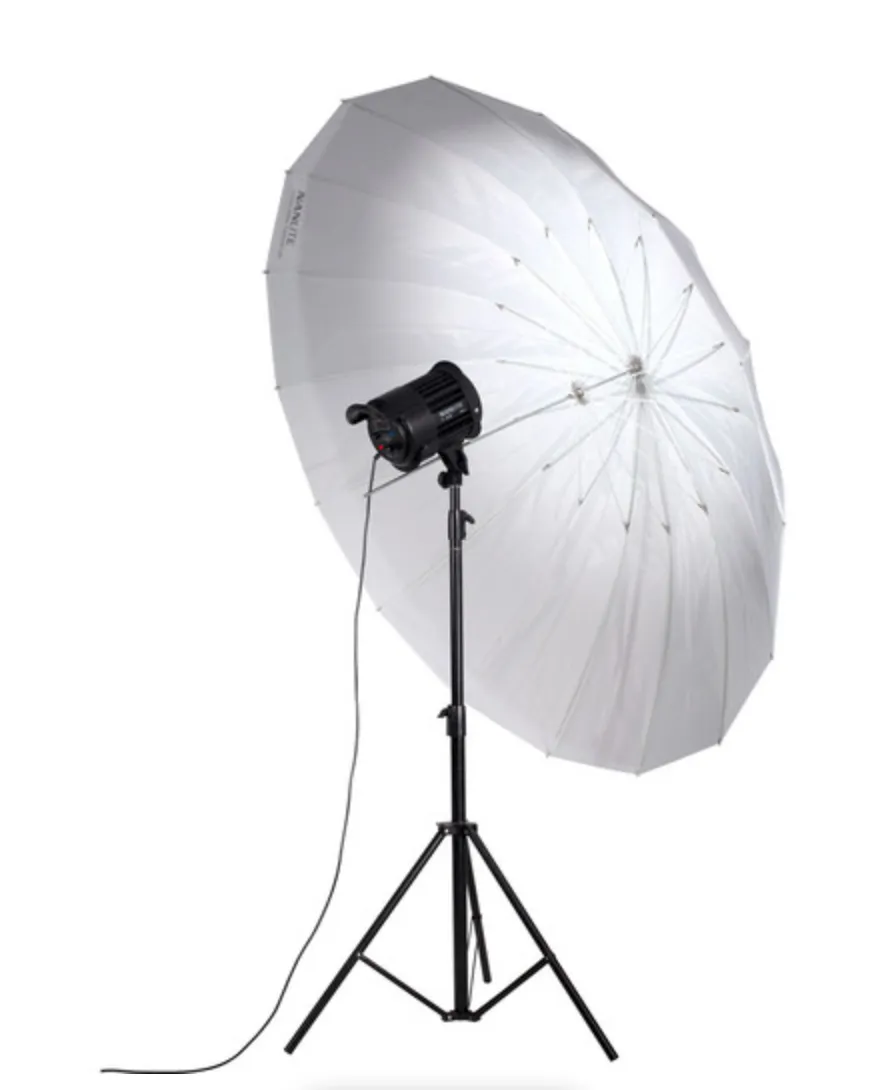 Per ulteriori regolazioni, le fonti di luce possono essere posizionate in qualsiasi punto dell’asta dell’ombrello per controllare il contrasto e la copertura mettendo a fuoco o sfocando la luce.
