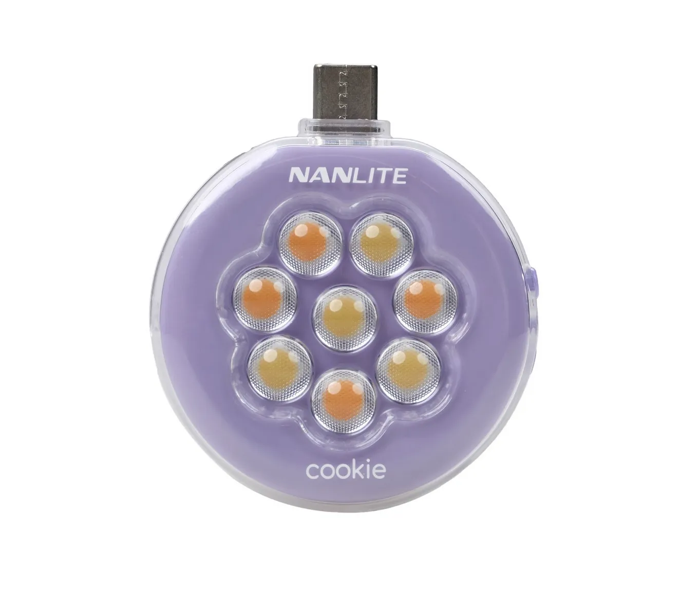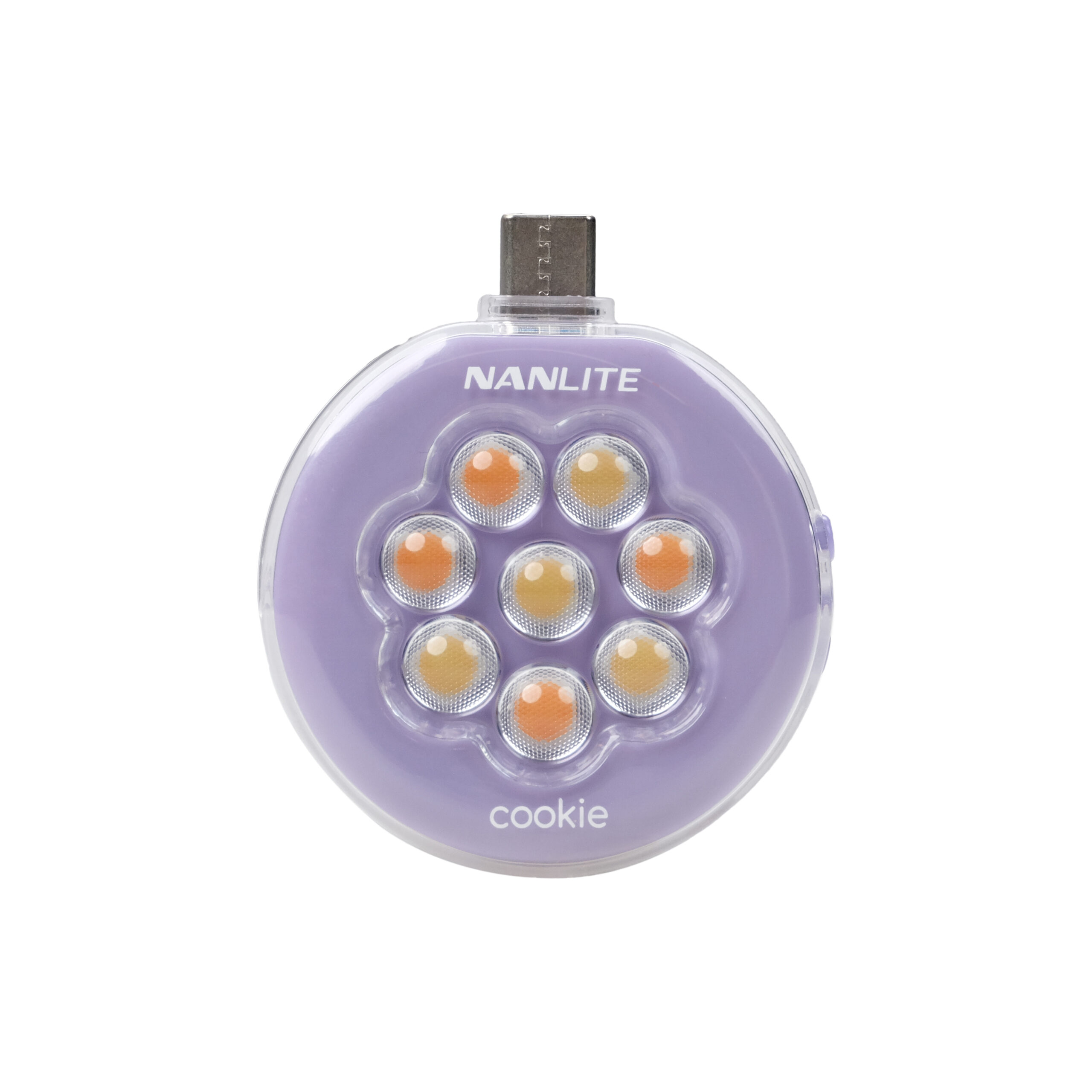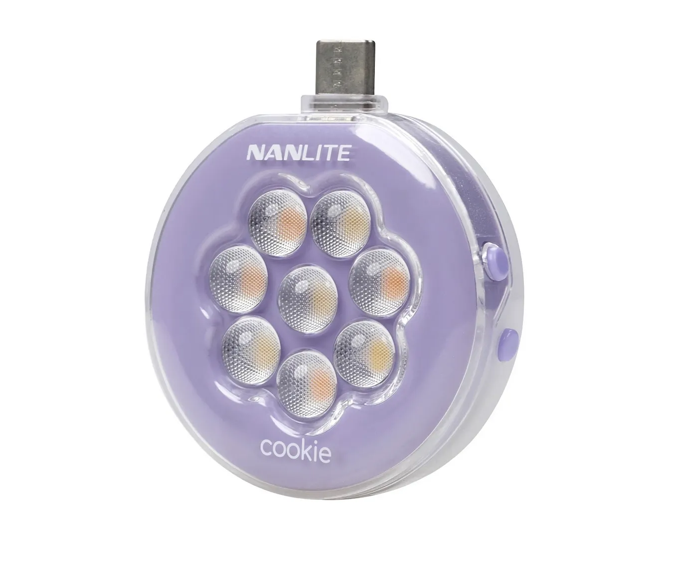 La mini luce LED Cookie è disponibile in 3 diversi colori: blu ciano, lavanda e rosa corallo.