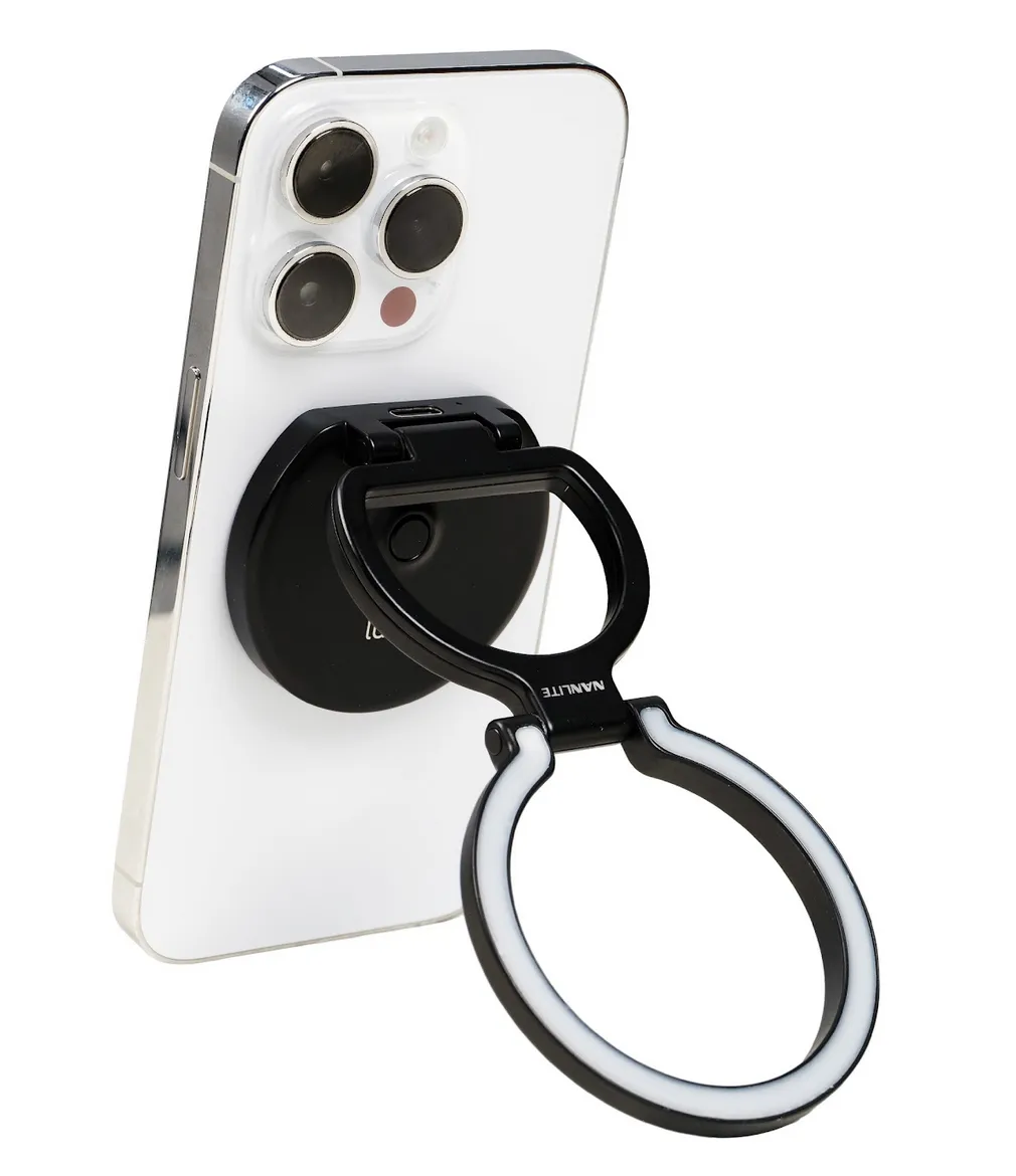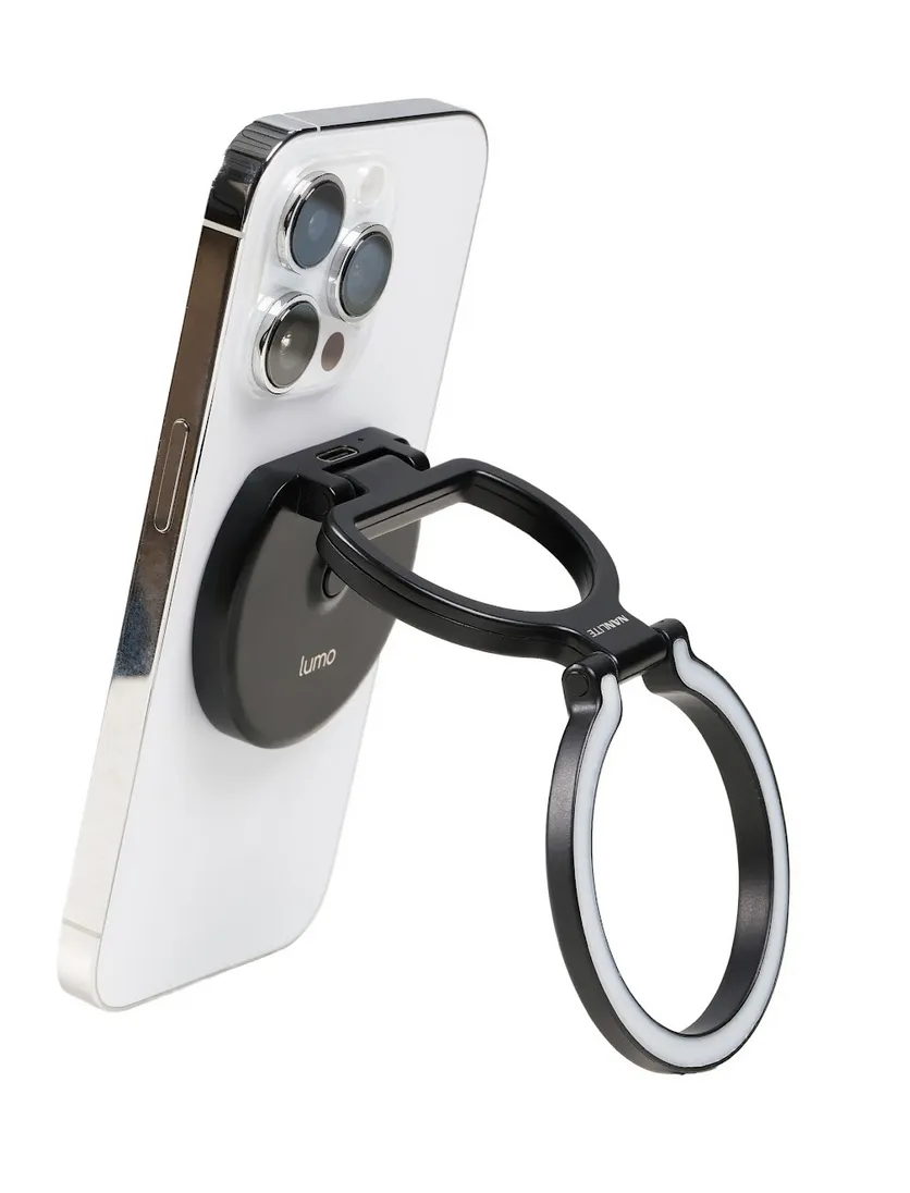 Il lumo si attacca rapidamente a qualsiasi telefono compatibile con MagSafe o ad altri telefoni utilizzando l’anello magnetico incluso. L’ingegnoso design a doppia cerniera consente di regolare l’angolazione senza sforzo, rendendolo perfetto come luce di riempimento, supporto per il telefono o impugnatura. Può essere utilizzato come supporto per sostenere il telefono per videochiamate a mani libere, visualizzazione di contenuti o riprese. Con un’altra rapida rotazione, si trasforma in un’impugnatura fissa per il telefono per riprese più sicure e stabili. L’elegante design della luce anulare crea una luce morbida e lusinghiera per gli occhi, aggiungendo un aspetto vibrante a ogni scatto. Sia che stiate scattando foto o filmando in movimento, lumo si aggancia saldamente, tiene fermo il telefono e si adatta facilmente a qualsiasi angolazione.
