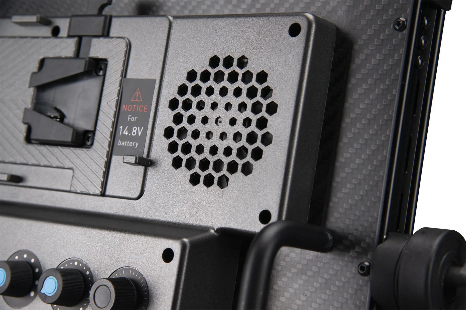 – Durata della batteria: al 100% di luminosità (circa): 2 ore (14,8 v Sony V-Mount 150wh)