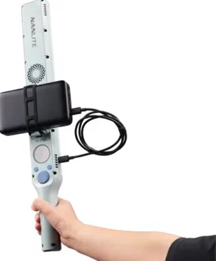 Questo supporto per power bank consente agli utenti di collegare un power bank esterno al supporto per batterie NP-F su dispositivi come la bacchetta, consentendo alla fonte di alimentazione di muoversi insieme al dispositivo.