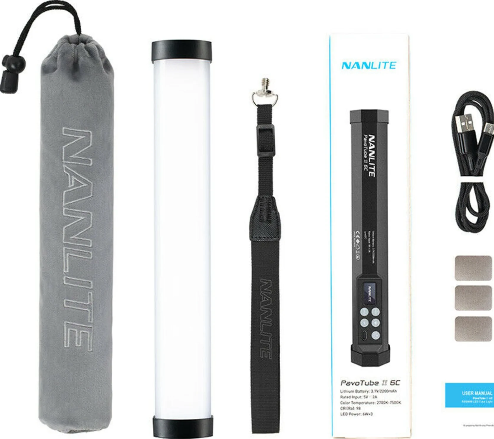 Compatto · Leggero · Pronto all’uso Il PavoTube II 6C può essere riposto in borsa o in tasca, perfetto come luce di riempimento a distanza ravvicinata o nascosto in un angolo per aggiungere atmosfera a qualsiasi scena come luce decorativa.
