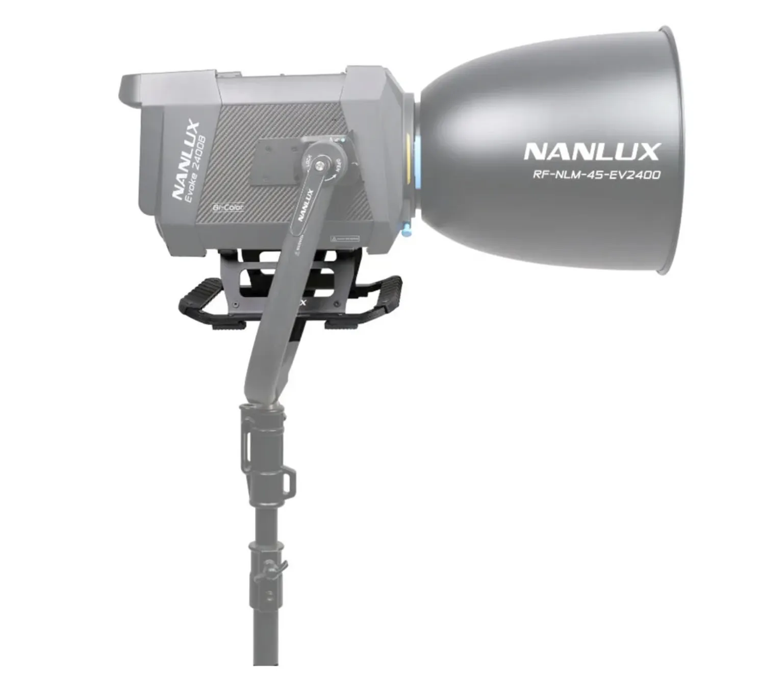 Compatibile con il sistema di montaggio NL-Mount dell’Evoke 2400B, lo skid supporta l’uso di modificatori di luce come il riflettore a 45° incluso nel kit, nonché altri accessori con contatti ottici. La funzione di riconoscimento degli accessori, attivabile nel menu dell’apparecchio, permette una gestione intelligente degli accessori collegati. Questa caratteristica è particolarmente utile per ottimizzare le configurazioni in scenari di ripresa complessi.