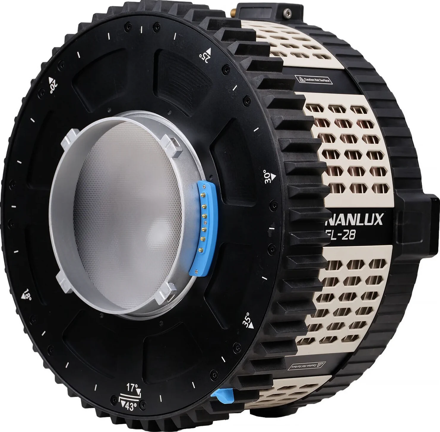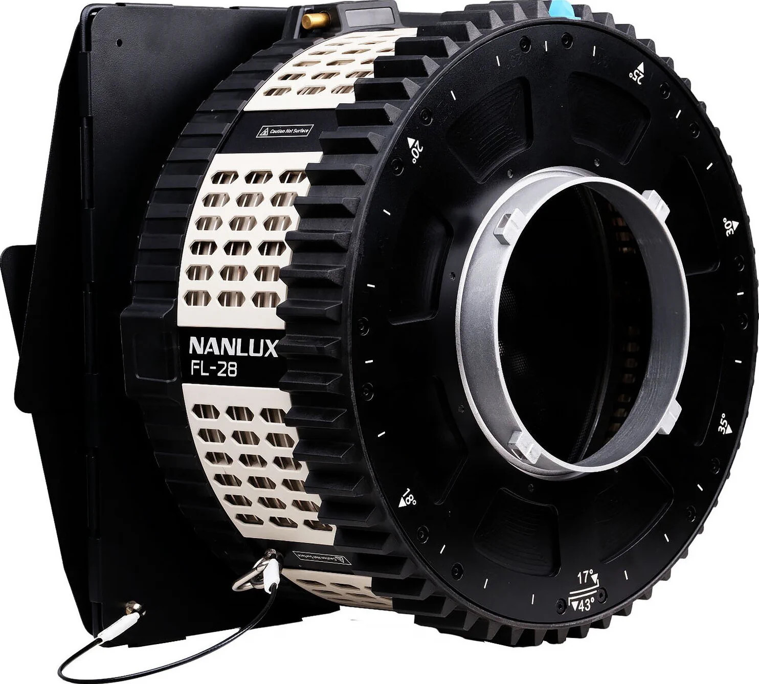 L’FL-28 utilizza l’innovativo sistema di montaggio NANLUX NL, codificato in modo che l’apparecchio Evoke a cui è collegato “sappia” esattamente come comportarsi e imposti la luce di conseguenza. Progettato principalmente per Evoke 1200, Evoke 1200B ed Evoke 900C, l’FL-28 funziona anche sul più recente proiettore Evoke 2400B, ma a causa della sua maggiore potenza, l’FL-28 limita in modo sicuro l’emissione di circa il 50% quando è collegato, ottenendo una lettura di 25.610 lux @3m (5600K, angolo di emissione di 17°). NANLUX lancerà presto un’altra nuova lente Fresnel specifica per Evoke 2400B che sfrutterà appieno la sua maggiore potenza.