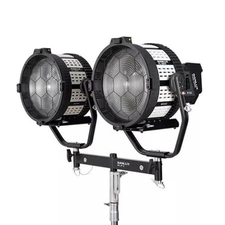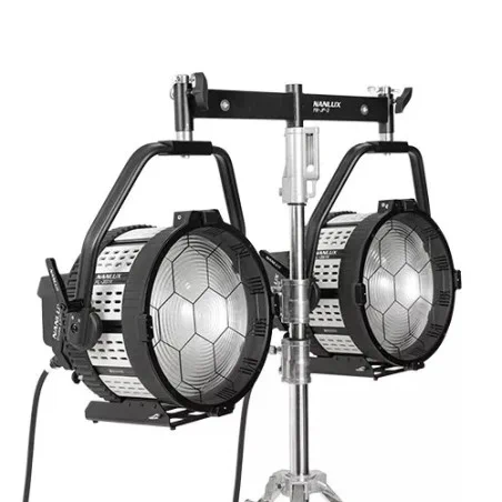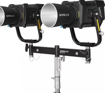 Il frame a due luci Nanlux FR-JP-2 con perno Junior consente di utilizzare due luci Evoke 1200 o Evoke 1200B in un unico telaio. Costruito in lega di alluminio ad alta intensità e acciaio inossidabile, offre una struttura stabile, un’elevata capacità di carico e resistenza alle vibrazioni. È possibile montare facilmente le luci su uno stativo a C compatibile utilizzando un perno junior. Supporta la panoramica a 360° con una maniglia di regolazione.