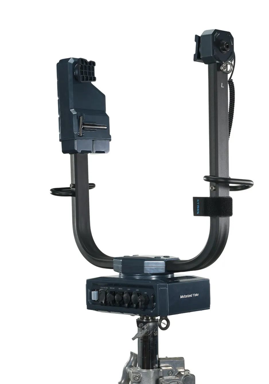 Proprio come gli apparecchi che supporta, il giogo motorizzato offre diverse opzioni di controllo, sia cablate che wireless. I pulsanti e le manopole sul pannello di controllo consentono regolazioni angolari precise, mentre il pulsante CENTER riporta istantaneamente il giogo nella posizione di pan e tilt a 0°.